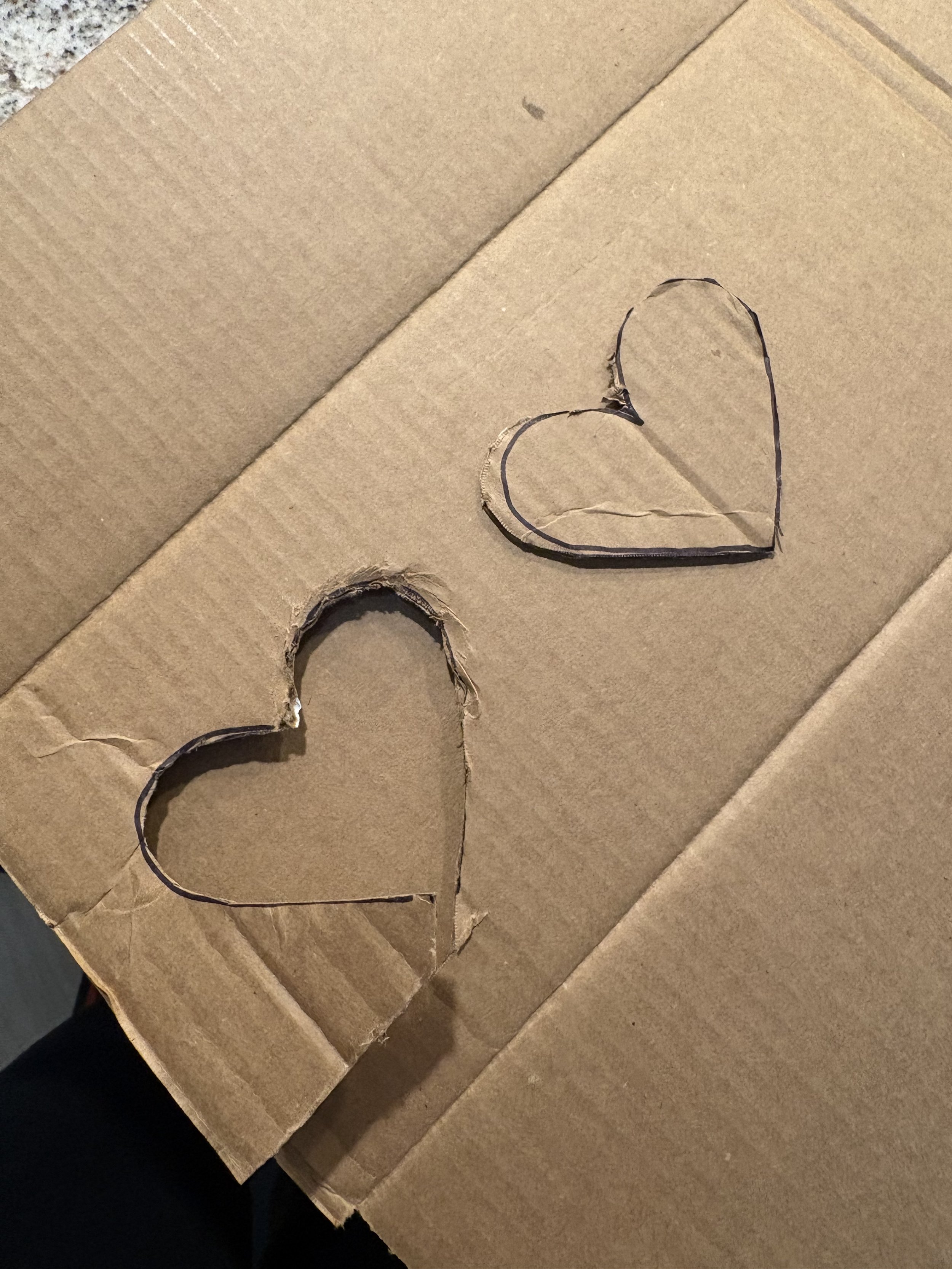 Then, I drew a heart and cut it out. I wanted all the hearts to be similar in size and shape so I used that first heart as a stencil. This helped make the garland more consistent. But I do think having hearts of all different variations would be really cute too!